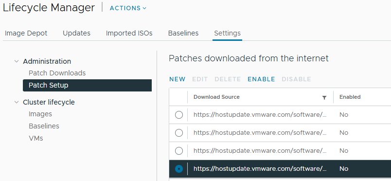 Ga op je vCenter naar Lifecycle Manager > Settings en vervolgens Patch Setup.