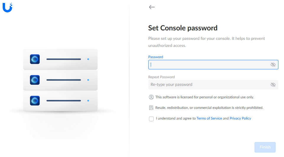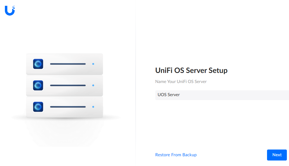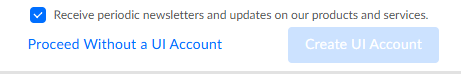 Indien je niet wil verbinden met een UI account en zelf zorg draait voor backups van alle data op je UOS server, klik dan onderaan op Proceed without a UI Account.