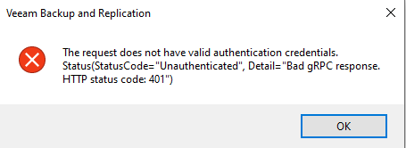 In dit geval was het stoppen van alle veeam services en het verwijderen van cached data de oplossing.