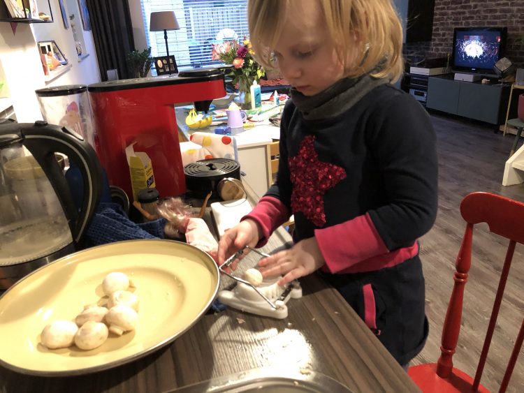 Janna wil papa ontzettend graag helpen in de keuken. Dat juichen we natuurlijk alleen maar toe.